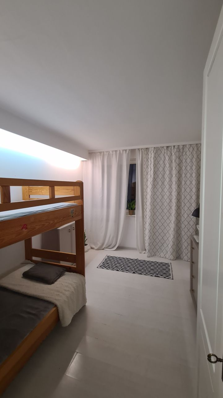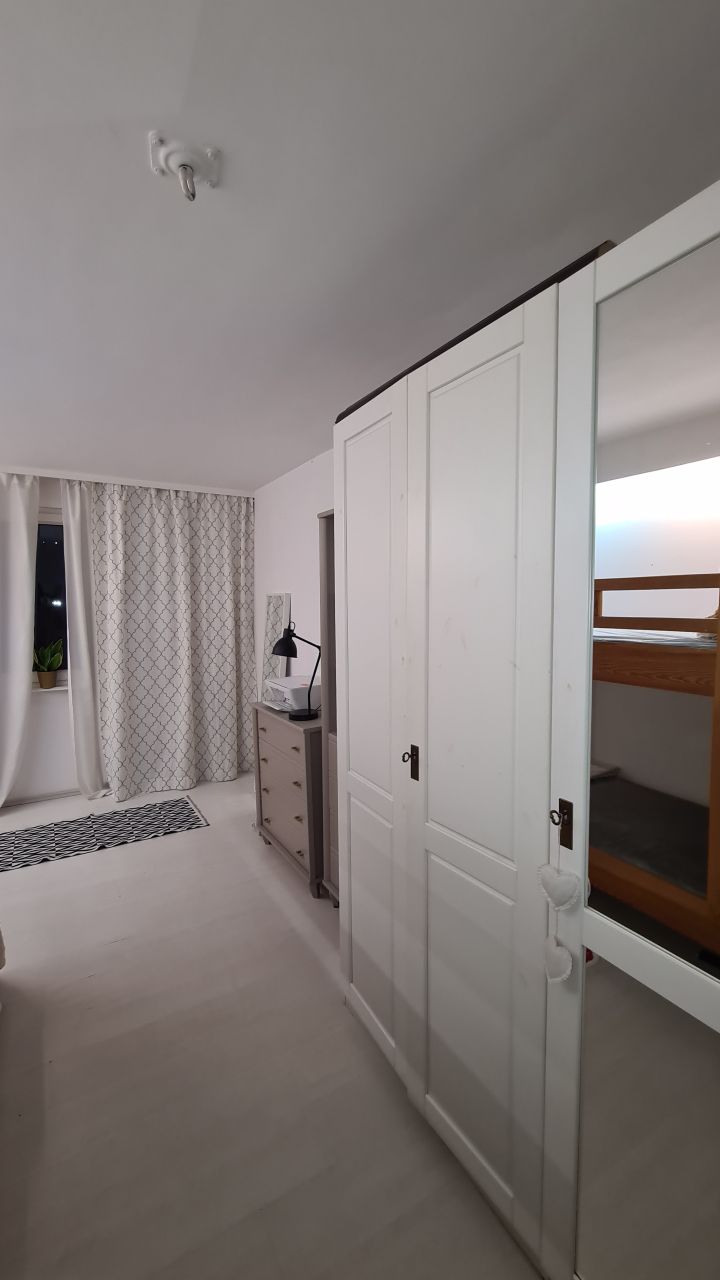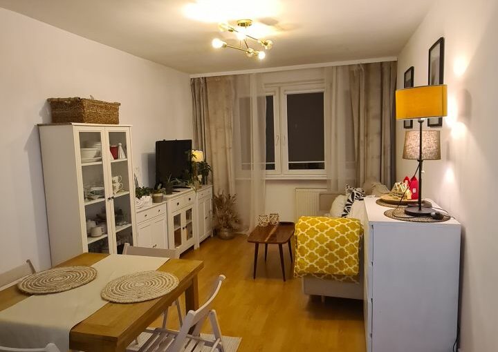 Mieszkanie o powierzchni 43 mkw. składa się z dwóch słonecznych pokoi, kuchni, przedpokoju oraz łazienki z wanną, jest w pełni umeblowane i wyposażone, co widać na załączonych zdjęciach. (piętrowe łóżko można wymienić na zwykłe, sypialniane).