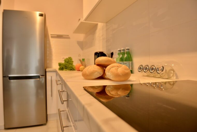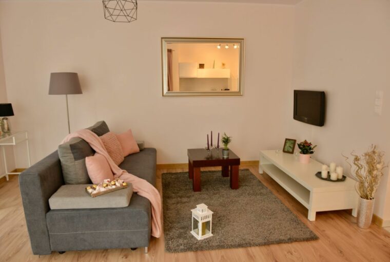 W lokalu znajduje się: kanapa, TV Samsung, stół z krzesłami, urządzona kuchnia z płytą Bosch, zmywarka, lodówka.