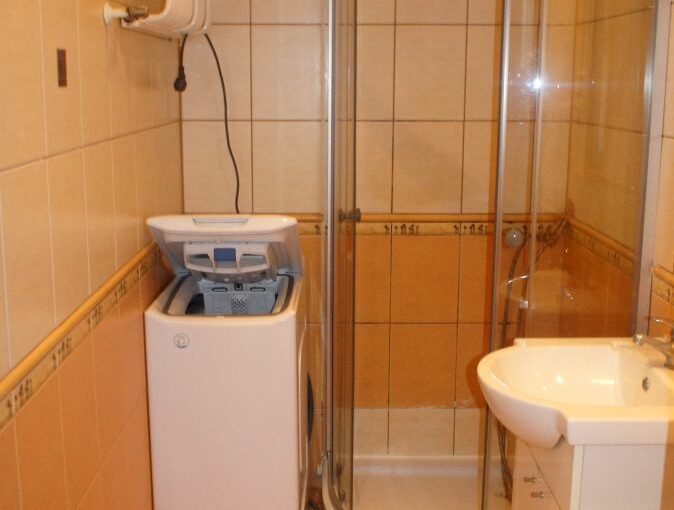 – Łazienka z kabiną prysznicową i pralką,