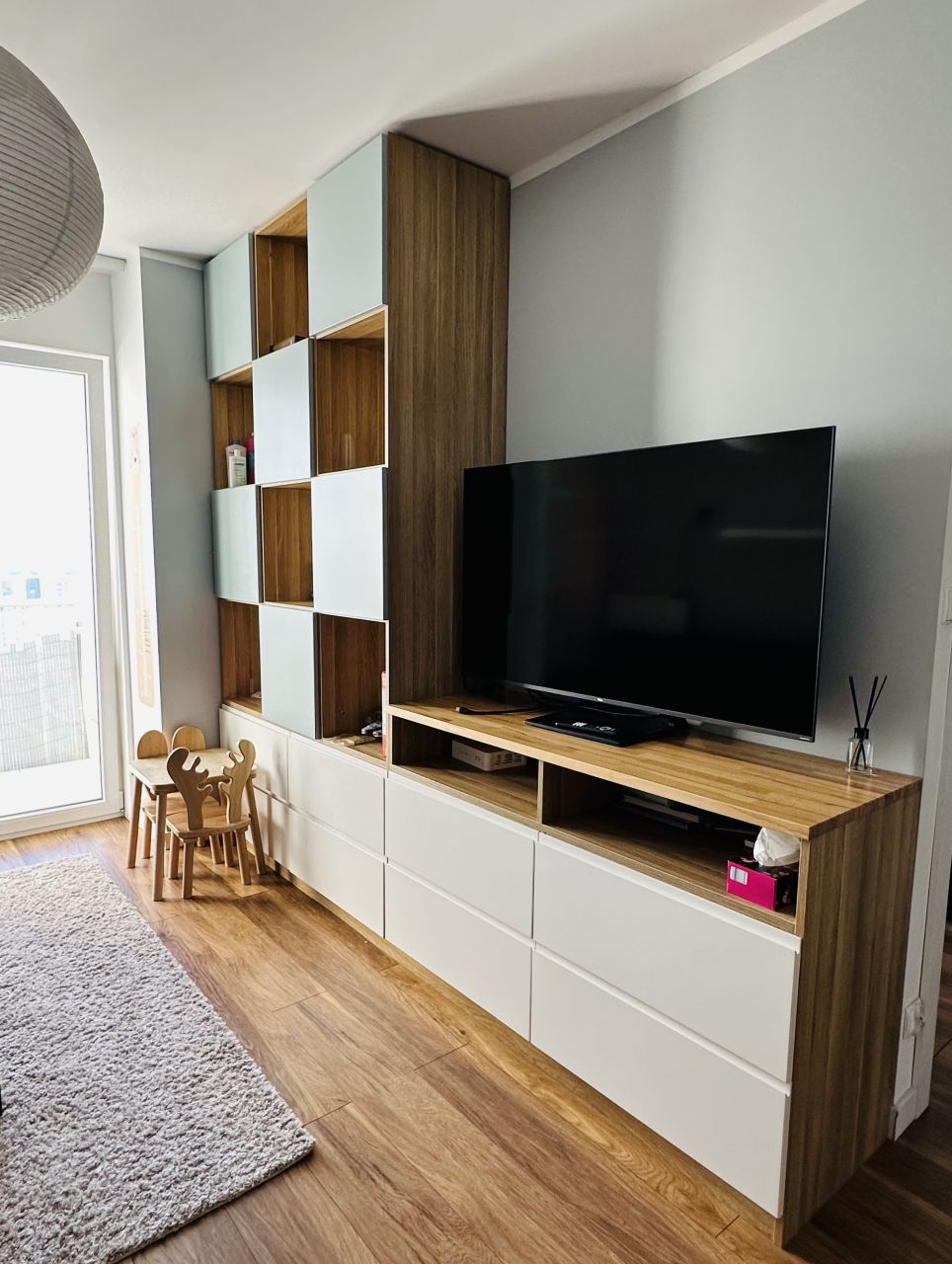 – Z salonu połączonego z kuchnią,