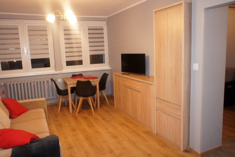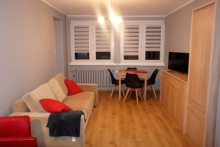 Nieruchomość w pełni wyposażona i umeblowana: 2 rozkładane sofy, 2 szafy ubraniowe, stół, krzesła, fotele i komody, sprzęt AGD: pralka, lodówka, zmywarka kuchenkę gazowo-elektryczna.