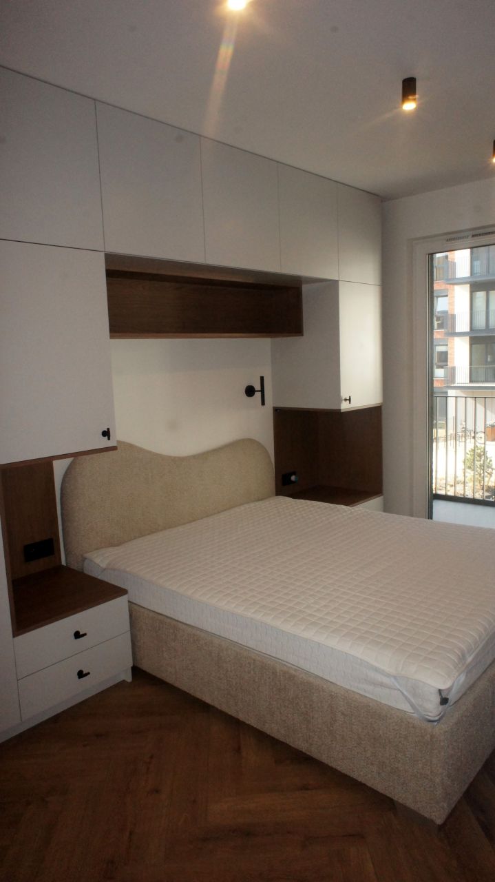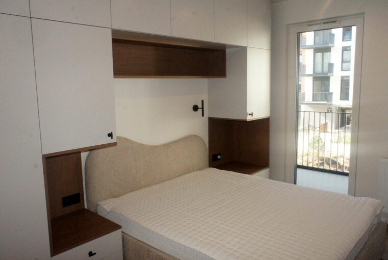 – Przytulnej sypialni duże łóżko i meblościanka,