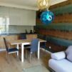 W pokoju dziennym stolik rozkładany, jadalniany, sofa z funkcją spania, praktyczna zabudowa z szafkami RTV, TV.