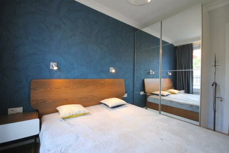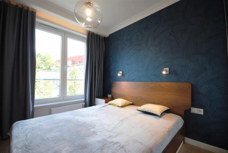 W sypialni podwójne łóżko, obszerna szafa ubraniowa.