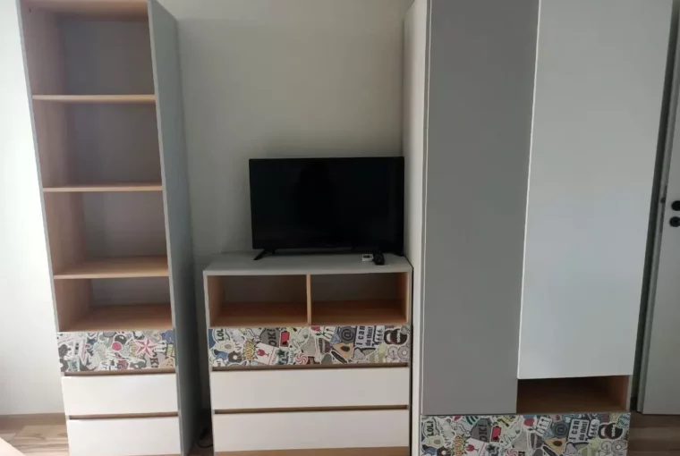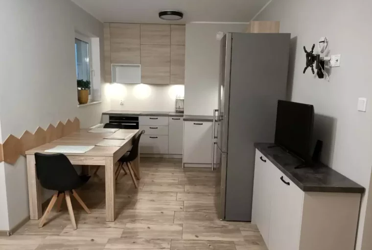Nieruchomość w pełni wyposażona i umeblowana: w salonie zostanie wstawiona kanapa w razie potrzeby, piekarnik, zmywarka, lodówka, pralka, telewizor, komplet naczyń i pościeli na życzenie.