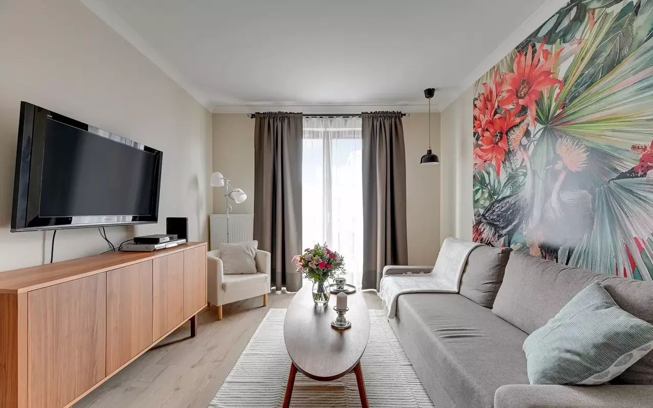 Osiedle na którym znajduje się mieszkanie jest całodobowo monitorowane, a ochrona zapewni komfort i bezpieczeństwo wynajmu.