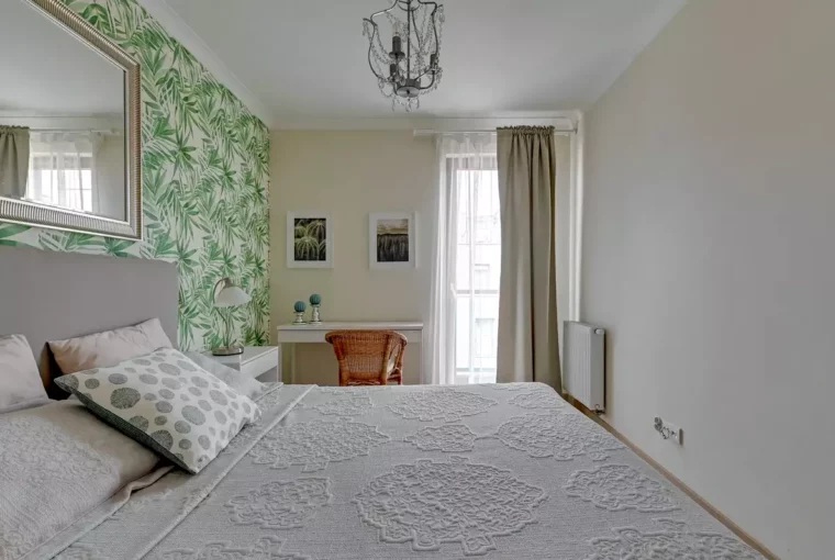 – Przytulnej sypialni, która wyposażona jest w wygodne łózko małżeńskie, elegancką toaletkę i pojemną szafę,