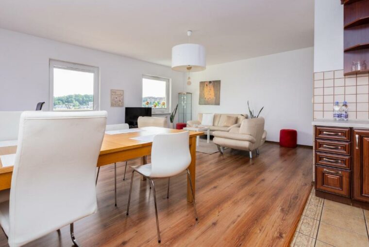Do wynajęcia słoneczne mieszkanie dwupoziomowe – trzypokojowe o powierzchni 74 mkw, na I piętrze budynku wybudowanego w 2001 roku, Gdańsk Zakoniczyn/Ujescisko ulica Porębskiego.