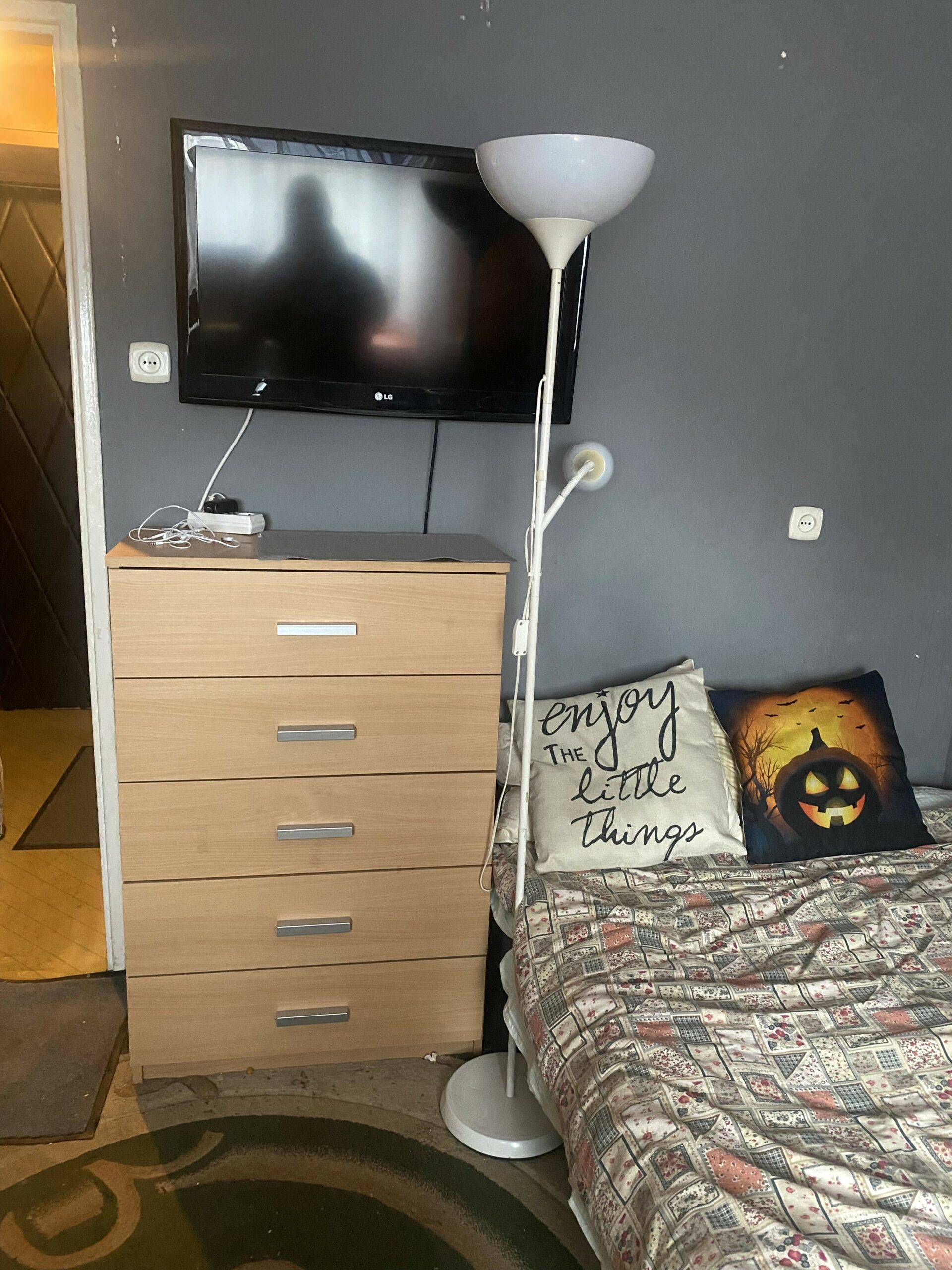 Nieruchomość wyposażona i umeblowana w niezbędne sprzęty:  łóżko, meblościanka, telewizor, lodówka,  kuchenka z piekarnikiem, pralka.